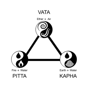 Ayurveda divides the elements that make up an individual person’s constitution into doshas. The three doshas, as they are commonly called, are Vata (Air & Ether), Kapha (Water & Earth), and Pitta (Fire &Water).